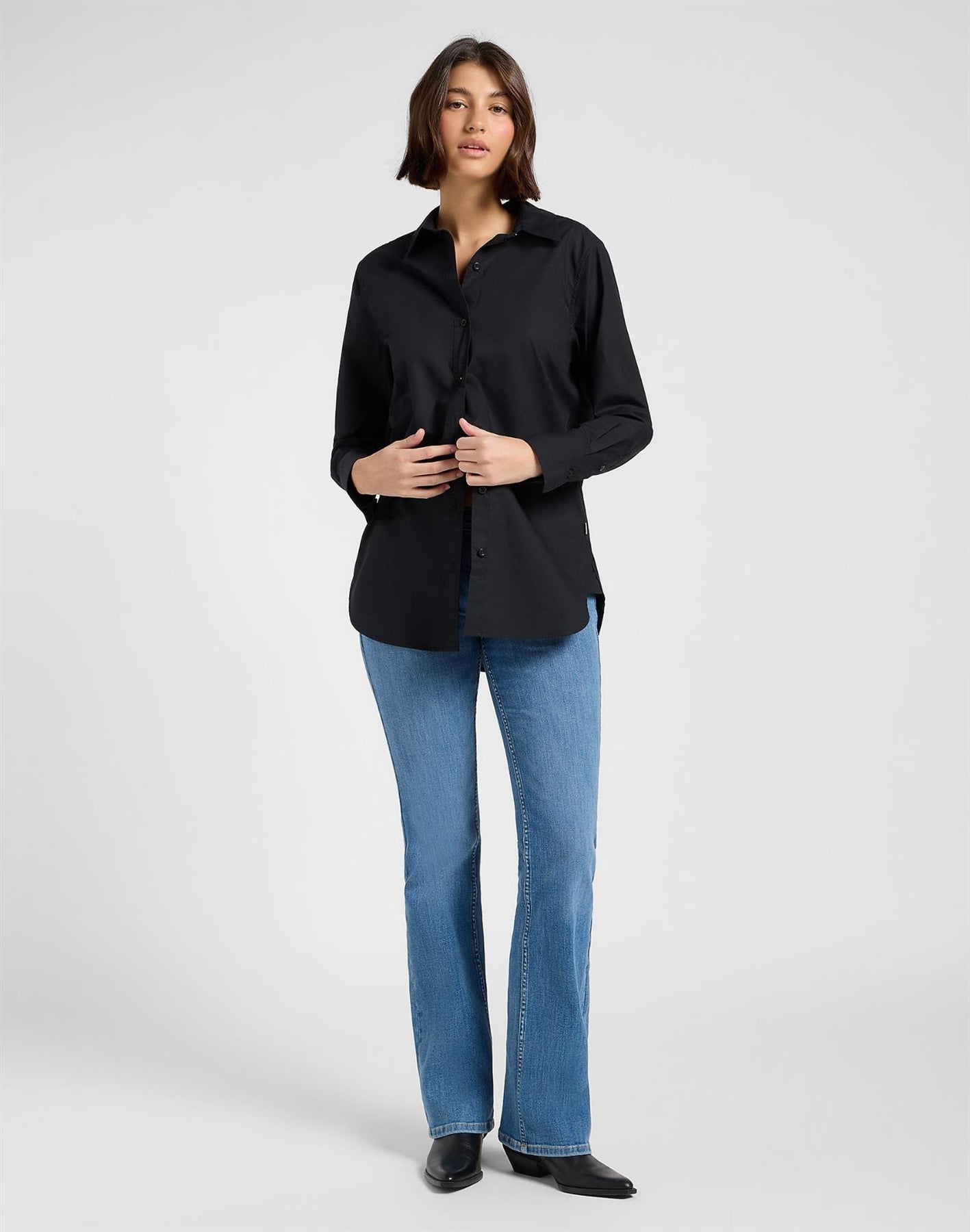 Bootcut passform – Disse bootcut jeansene er laget for å gi en flatterende passform som utvider seg lett fra kneet og ned, noe som gir en balansert silhuett.