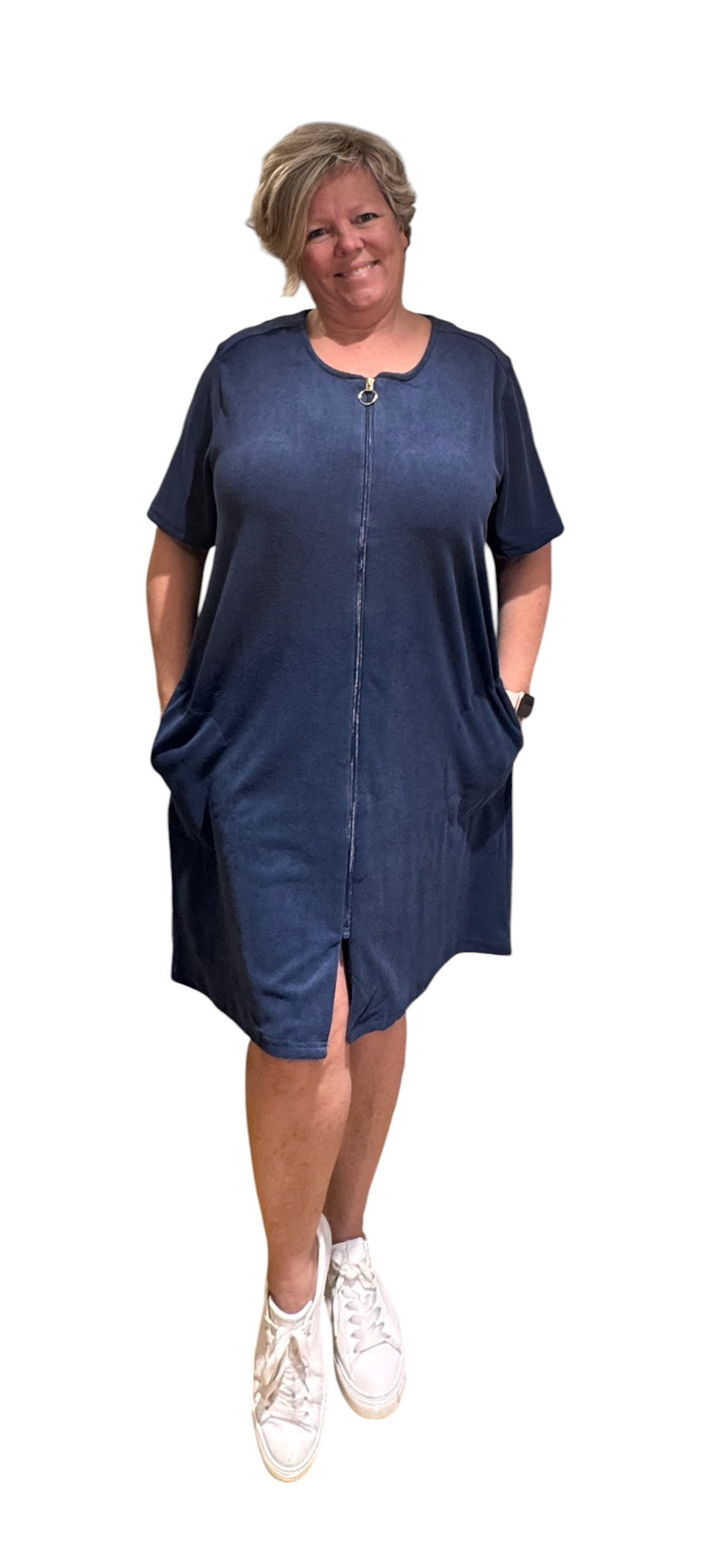 Den myke frottékvaliteten føles deilig mot huden og har god stretch som gir komfort ja og bevegelsesfrihet hele dagen. Kjolen har en praktisk glidelås foran med gullfarget glidelåstrekker, som gir et sporty, men samtidig feminint uttrykk.