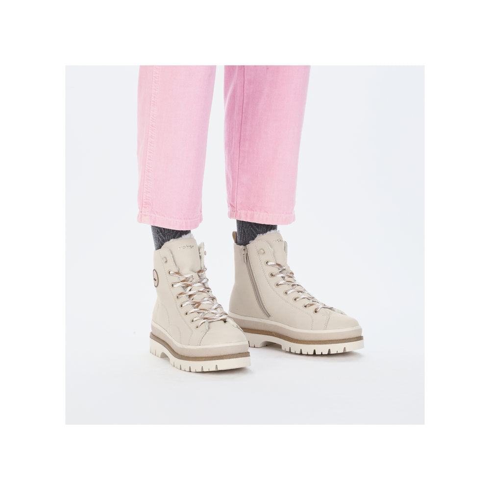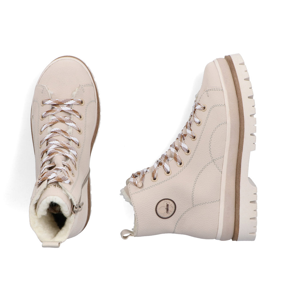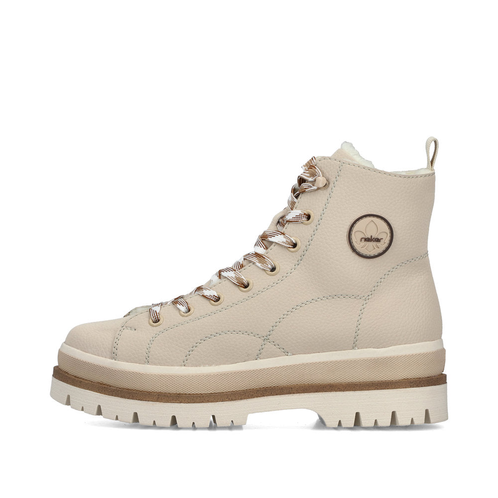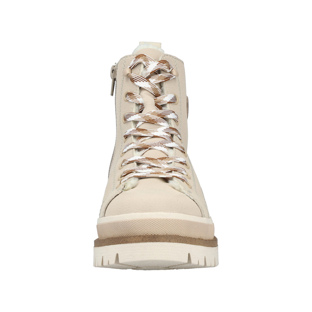 Y6220-60 fra Rieker er en lett og robust vinterboots i syntetisk skinn, designet med både funksjon og mote i tankene. Den har en myk, varm innvendig fôring, snøring med metallmaljer og glidelås på innsiden som gjør den enkel å ta av og på.