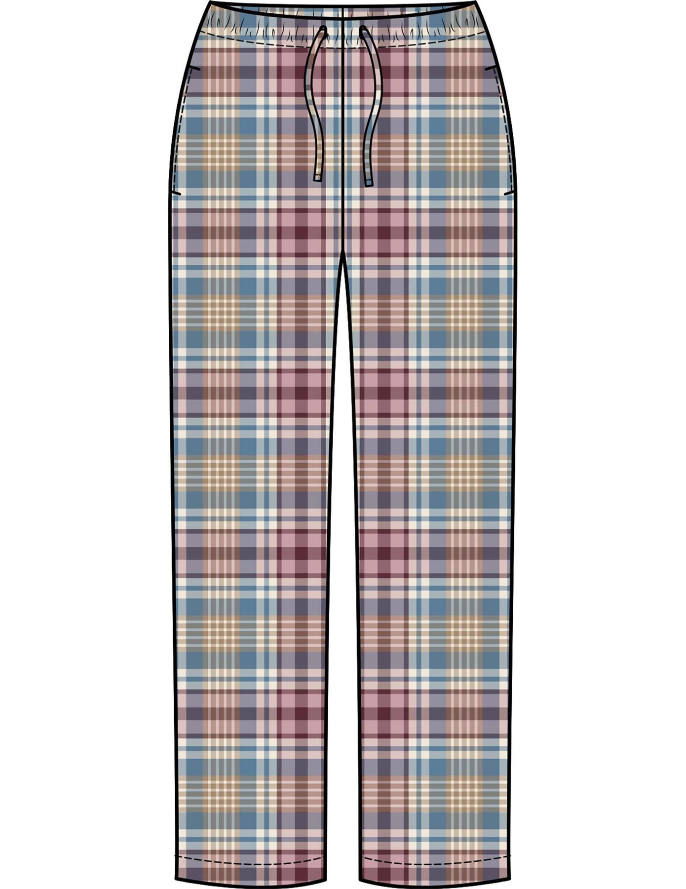 Kos deg i ekte komfort med Flannel Trousers fra Trofé. Disse pysjbuksene er laget i 100% børstet bomull som gir en ekstra myk og lun følelse mot huden. Med klassiske garnfargede ruter i rosa, vinrød, blå og beige på en frisk offwhite bunn, får buksene et tidløst og koselig uttrykk.