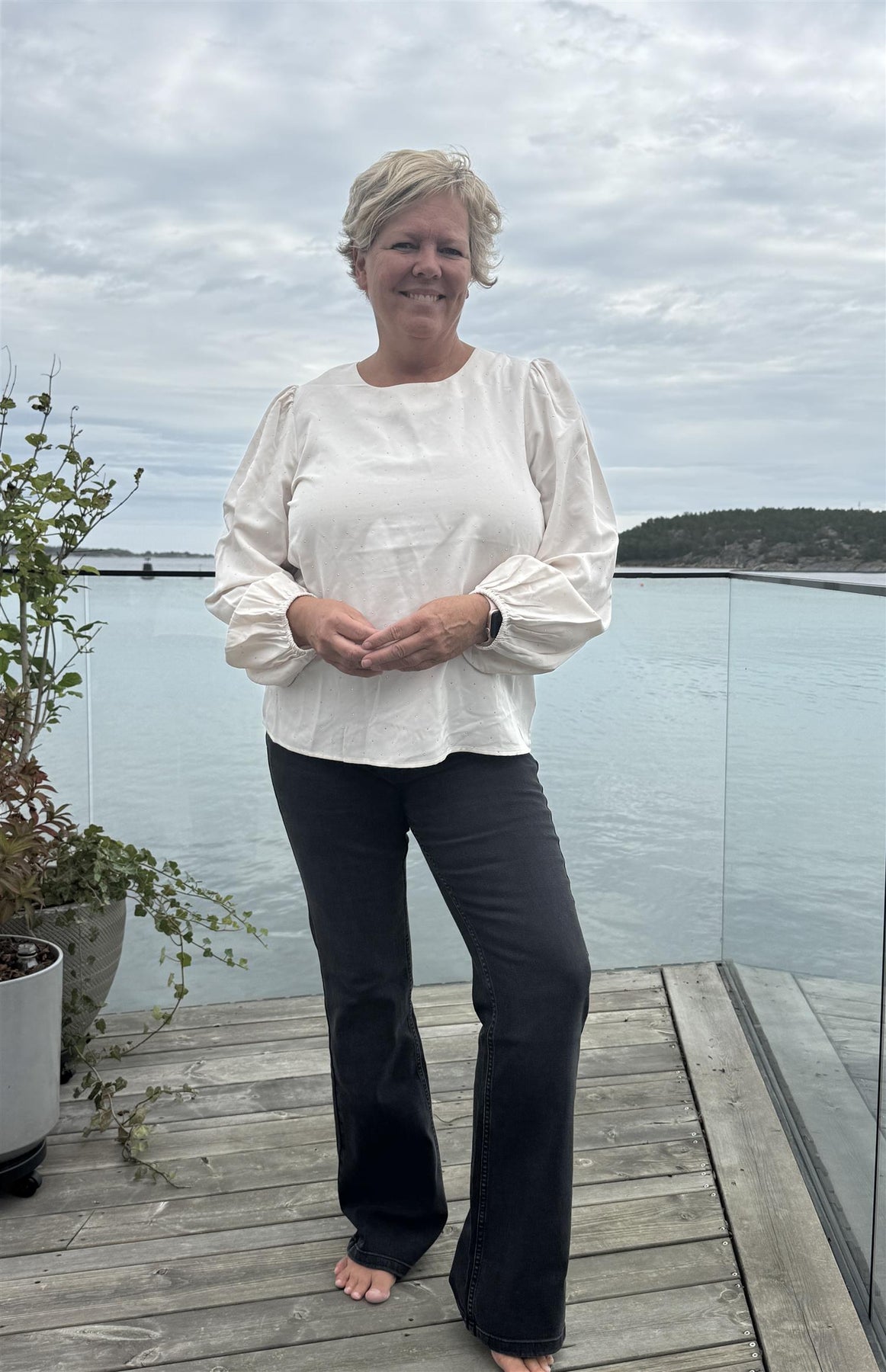 Blusen har små lapper over hele linjen som similisten. Det gir en skimrende glans. En veldig fin og feminin bluse, som kan brukes både til hverdags og fest