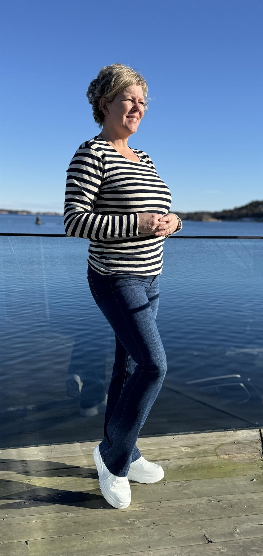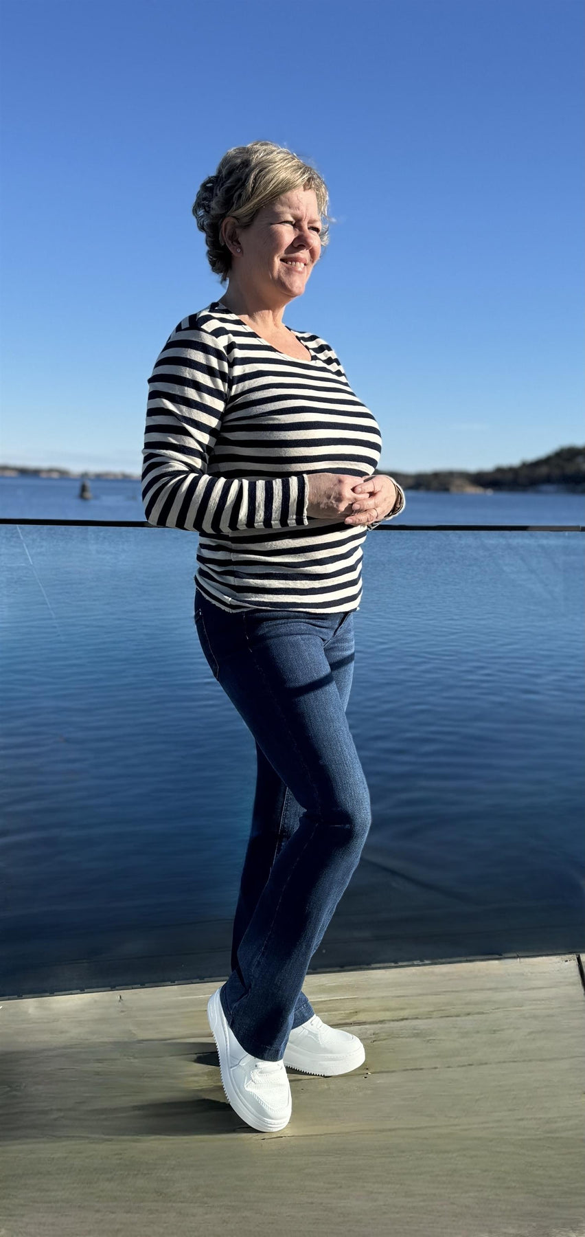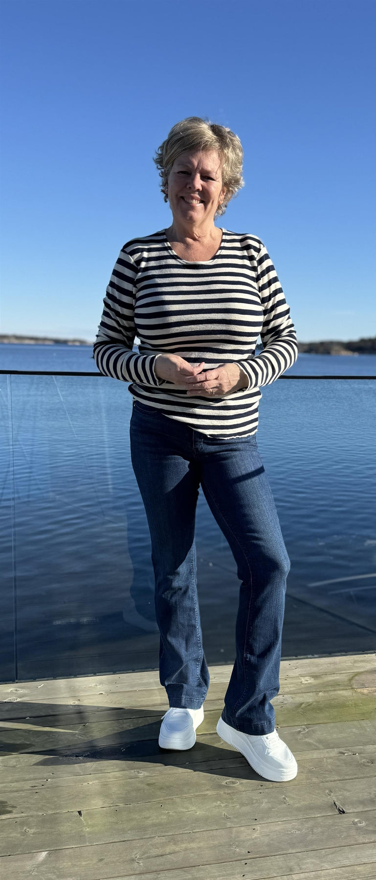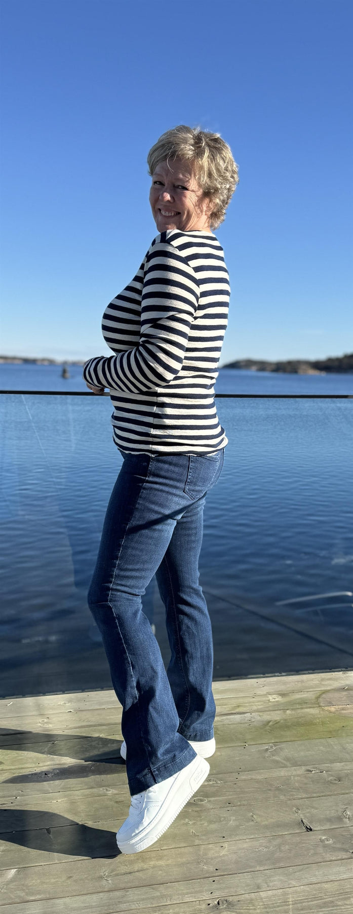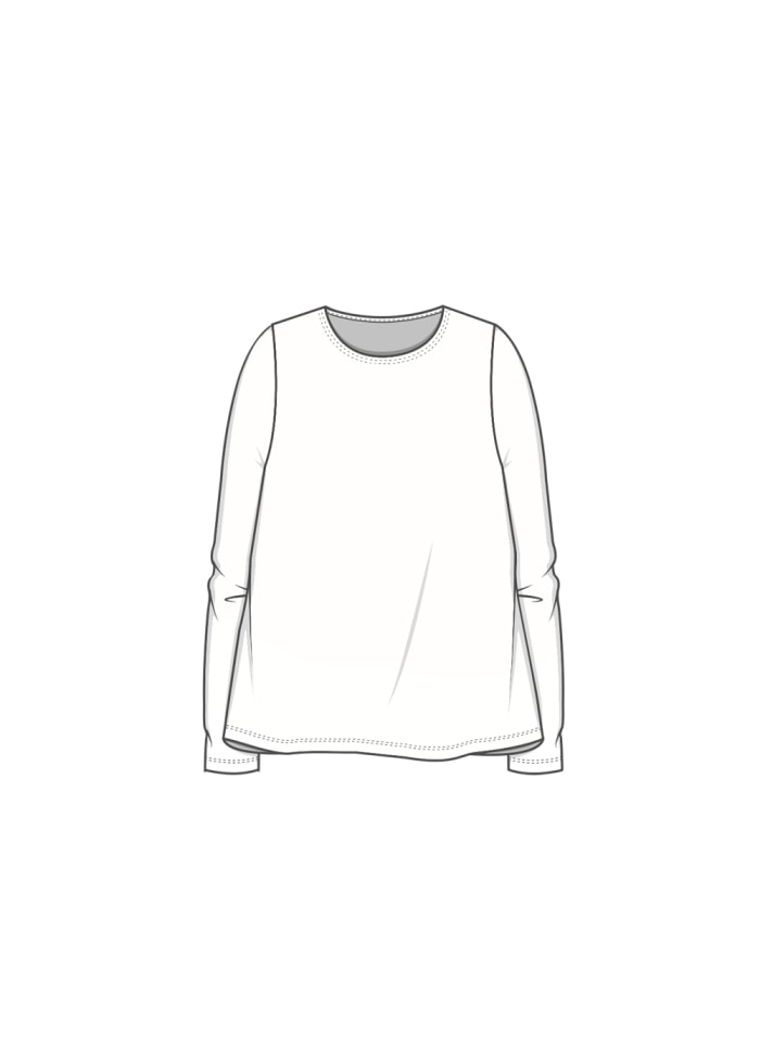 Rund hals, lange ermer og a-fasong. Denne modellen er designet med myke, håndskårne råkanter, og har en romslig og feminin passform som faller flatterende fra skuldrene og ned.