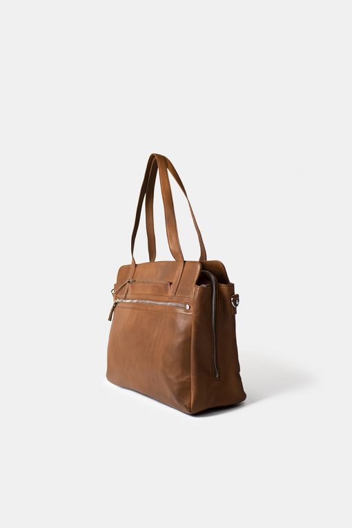 Innvendig: Vesken er delt inn i 3 rom, hver lukket med en separat glidelåslukking. Det ene rommet i vesken er utstyrt med en mindre glidelåslomme for diverse.