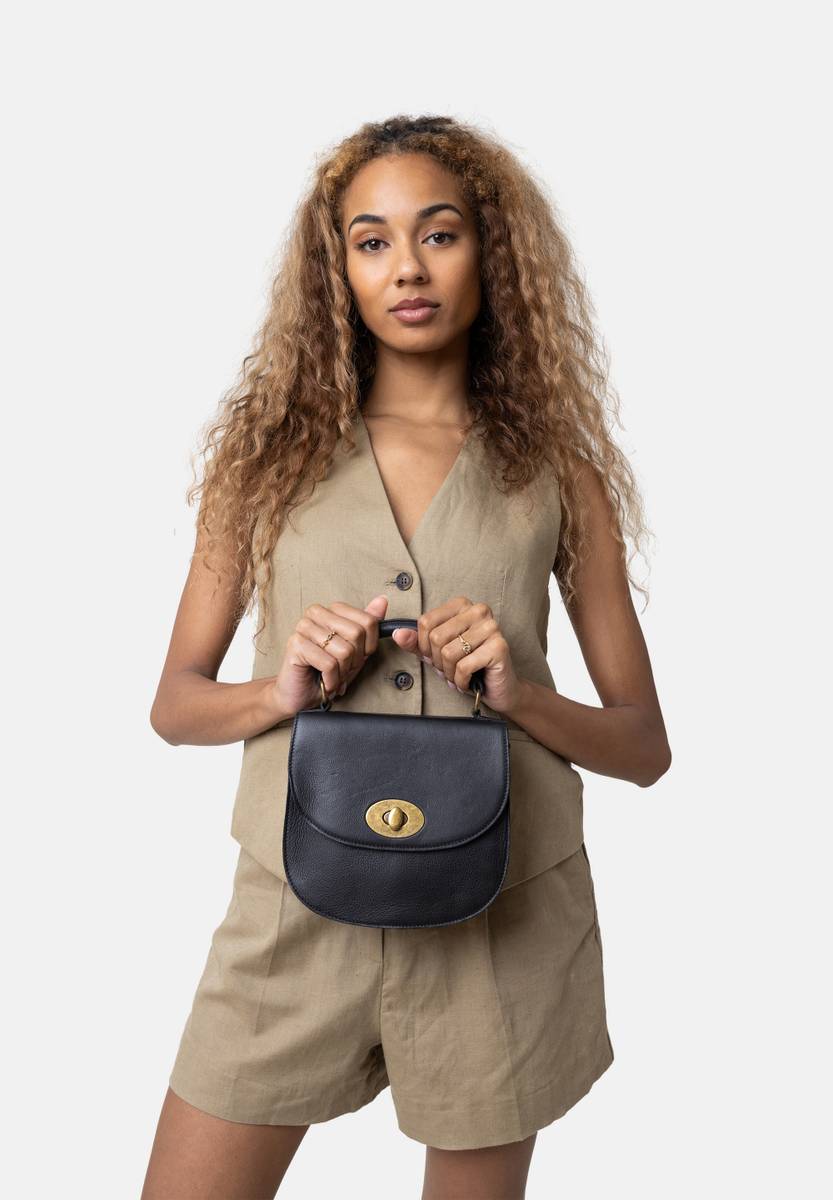 Caspian Small 5510 fra Re:Designed By Dixie er en trendy liten veske som lukkes med en spenne foran og fint avrundet håndtak øverst. Kommer med justerbar og avtakbar skinnreim, slik at vesken også kan bæres over skulderen eller cross-body.