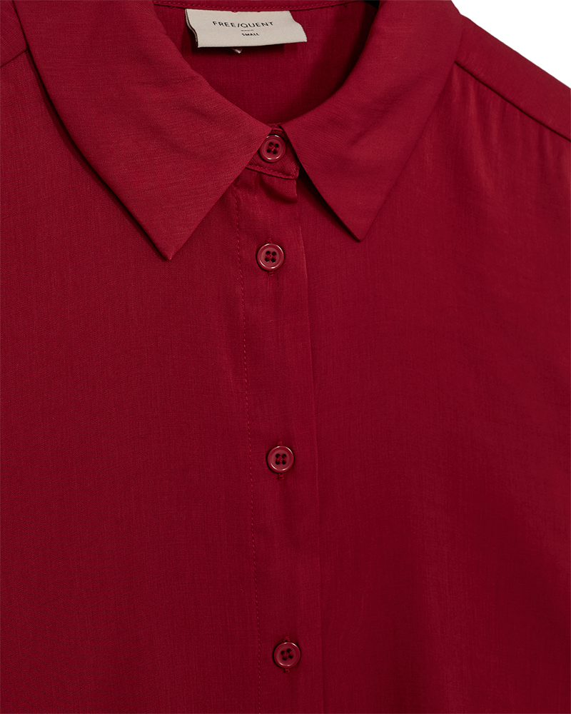 Denne vakre røde skjorten gir antrekket ditt et løft – enten du styler den til jeans for en avslappet look, eller til skjørt for en mer pyntet stil.