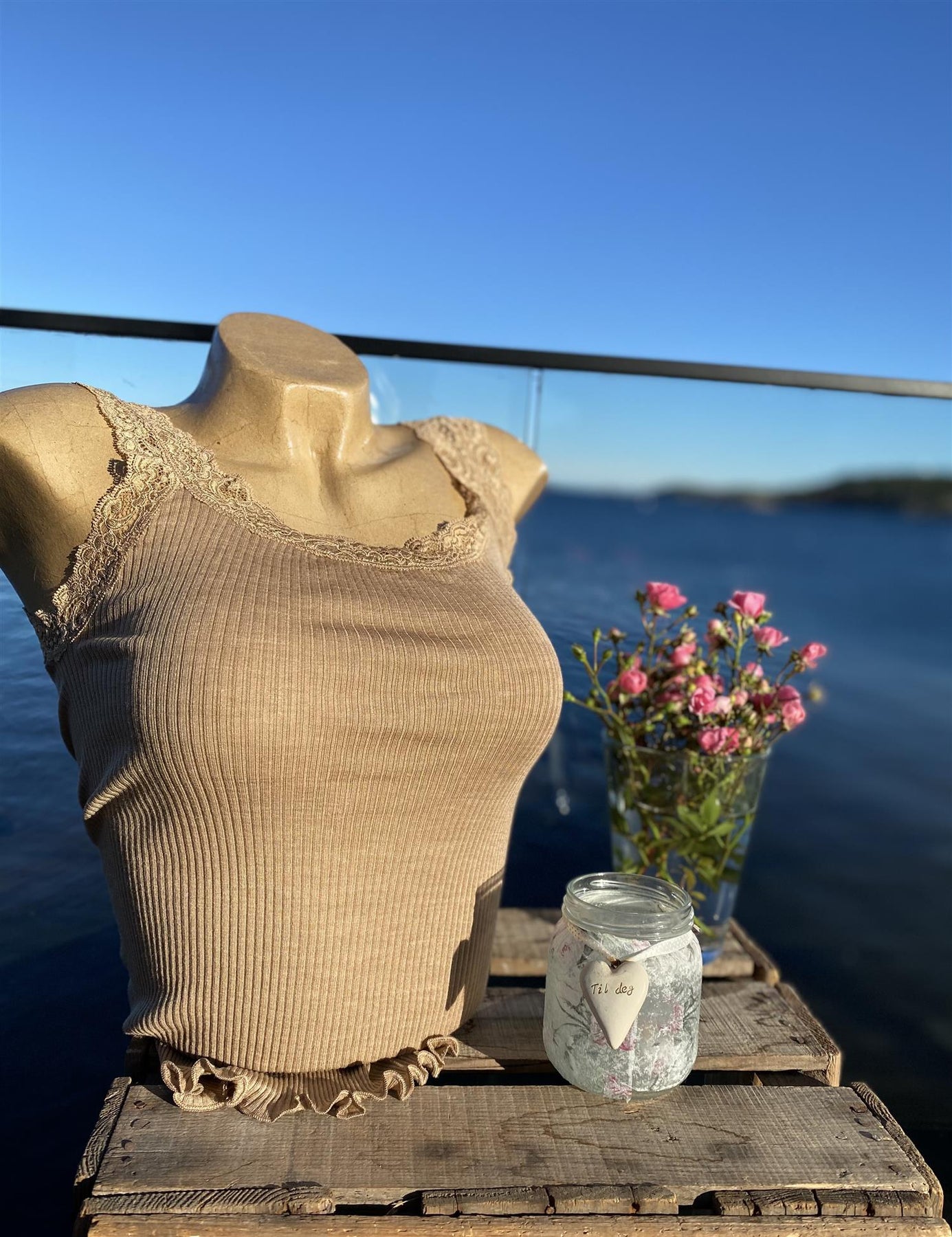 Egi Ull & Silke Ribbestrikket Singlet er laget av en deilig blanding av ull og silke, og den er det perfekte valget for å ha direkte mot kroppen. Den har et sømløst design som smyger seg under de fleste plagg, og gir deg en jevn, komfortabel passform hele dagen.